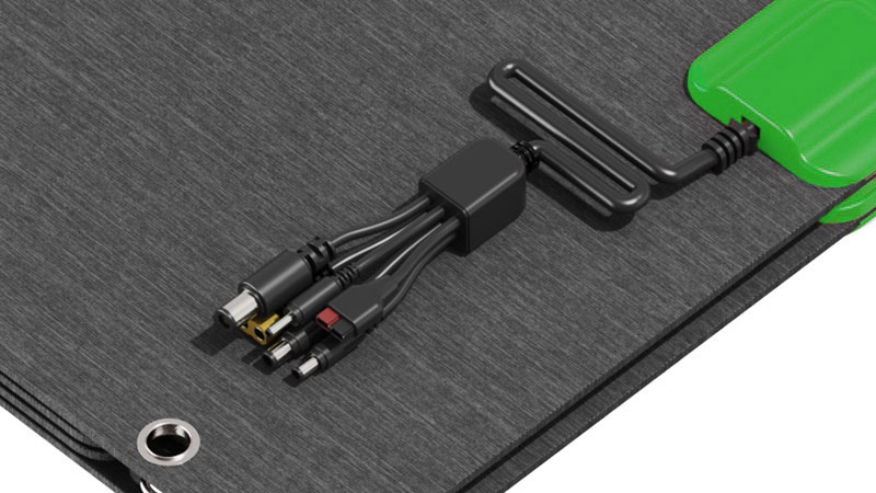 | Dimensions unfolded | 1740 x 426 x 27mm | Weight | 5.3kg | Connector type | MC4 to 6 connectors Cable - Anderson30A, XT60, DC35135, DC5521, DC6530 and DC7909 | Waterproof | IP67 |